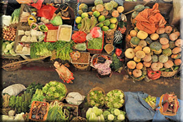 to buy from gilf-painted parasols with a 7-foot span to sacks of cloves and baskets of blue hydreangeas.